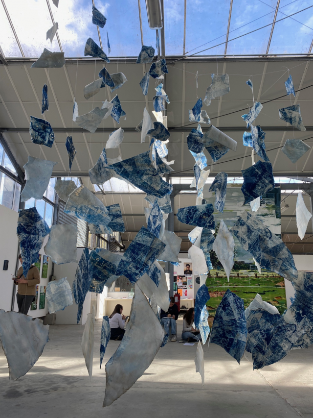 L’artiste coréen Damiano PAKH qui travaille sur le papier Hanji (fait à base de mûrier) la technique du cyanotype offrant des installations mobiles, transparentes très poétiques.